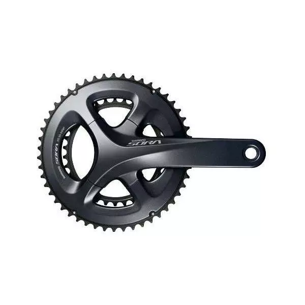 Con la nueva presentación del grupo Sora 3000 Shimano nos trae estas bielas para la bicicleta de carretera aportando una excelente calidad a un precio relativamente bajo. Su nuevo diseño las hace atractivas visualmente dando un aspecto Premium a nuestra bici. Utiliza una línea de cadena de 43,5 y su desarrollo de platos es de 34 dientes el plato pequeño y 50 diente el grande. Están diseñadas para trasmisiones de 9 velocidades.